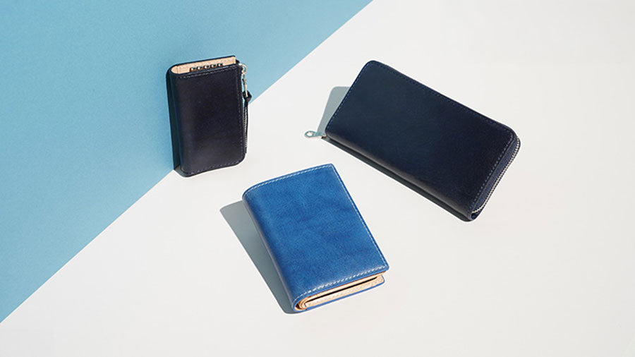 藍染めレザーならではの深みある“青”の美しさを、余すことなく堪能できる〈スムース〉シリーズ。職人の手作業によって生まれる濃淡の表情は、一点一点異なる個性を宿し、3色それぞれに独自の魅力が息づいています。長財布・折り財布をはじめ、名刺入れやキーケースまで多彩なラインナップをご用意。同じシリーズで揃えれば統一感のある上質なコーディネートが楽しめ、ご家族やパートナーとのお揃いにもぴったりです。藍の奥深さと革の風合いを日常で楽しめる、人気のシリーズです。