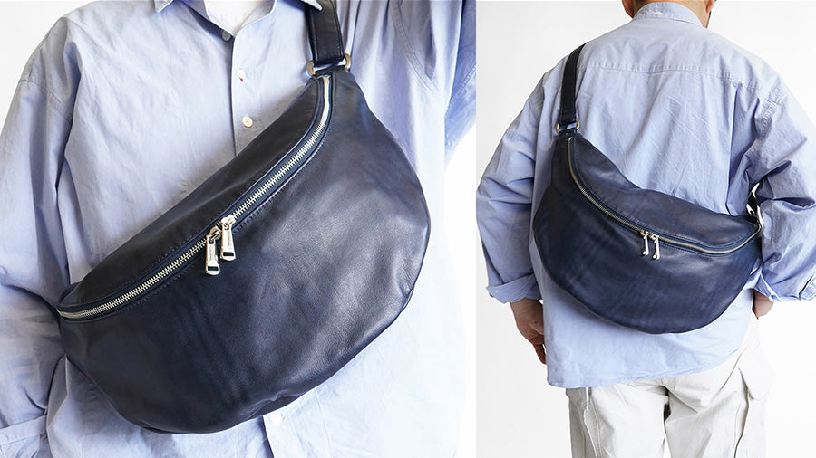 新作として登場した、やわらかな藍染めレザーのショルダーバッグ。くったりとした質感と、表情豊かなムラ感が、さりげなくも印象的な存在感を演出します。普段使いはもちろん、コーディネートのアクセントとしても活躍する、スタイリッシュな一品です。