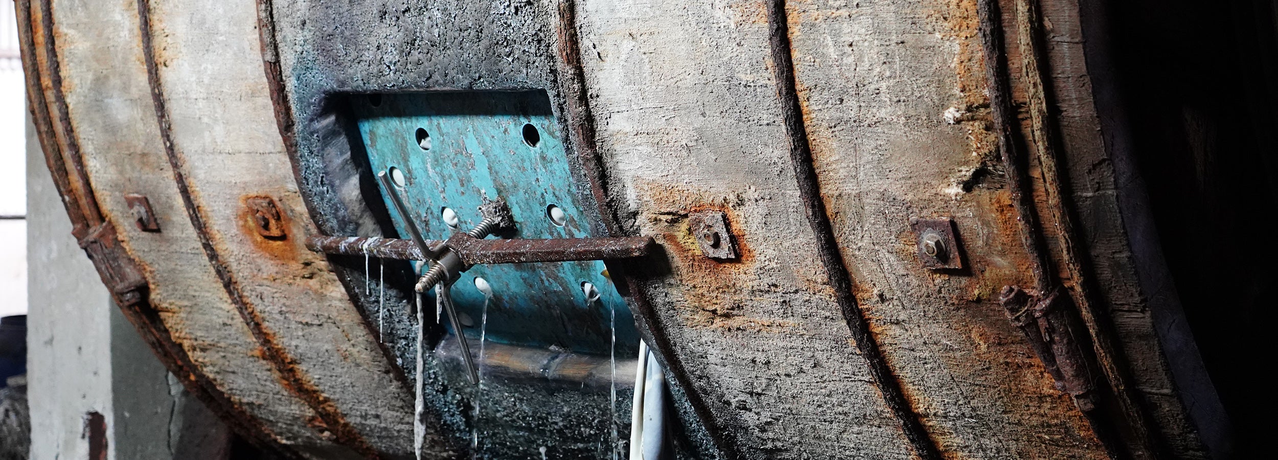 The raw material, indigo, is fermented and then added to the dye to be dyed.