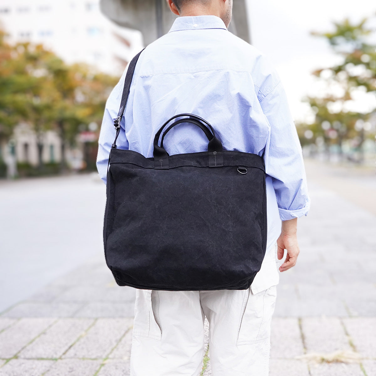 A versatile tote shoulder bag that can be carried in two ways: by the handle or by the shoulder strap.
